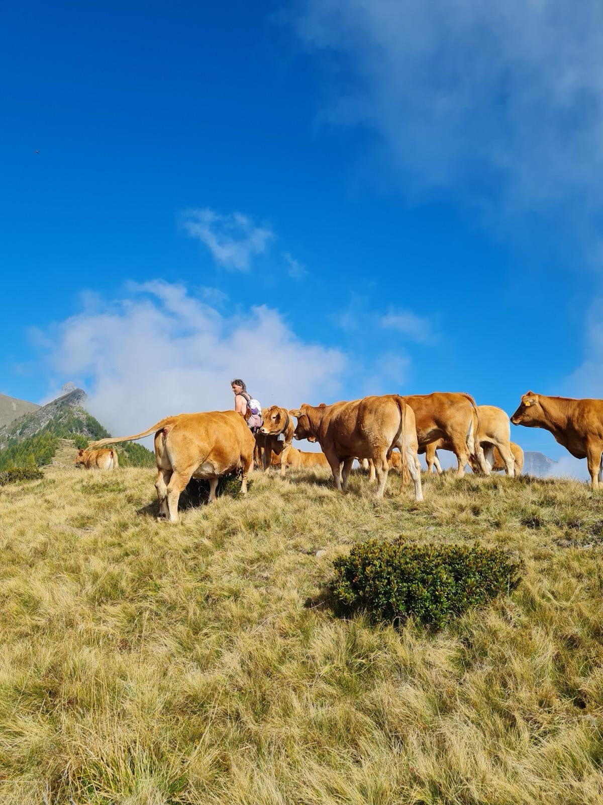 Durante l'estate, con la transumanza, portiamo le nostre mucche sui pascoli della Valchiavenna situati a quota 1600m fino a 2400m per circa 5 mesi.