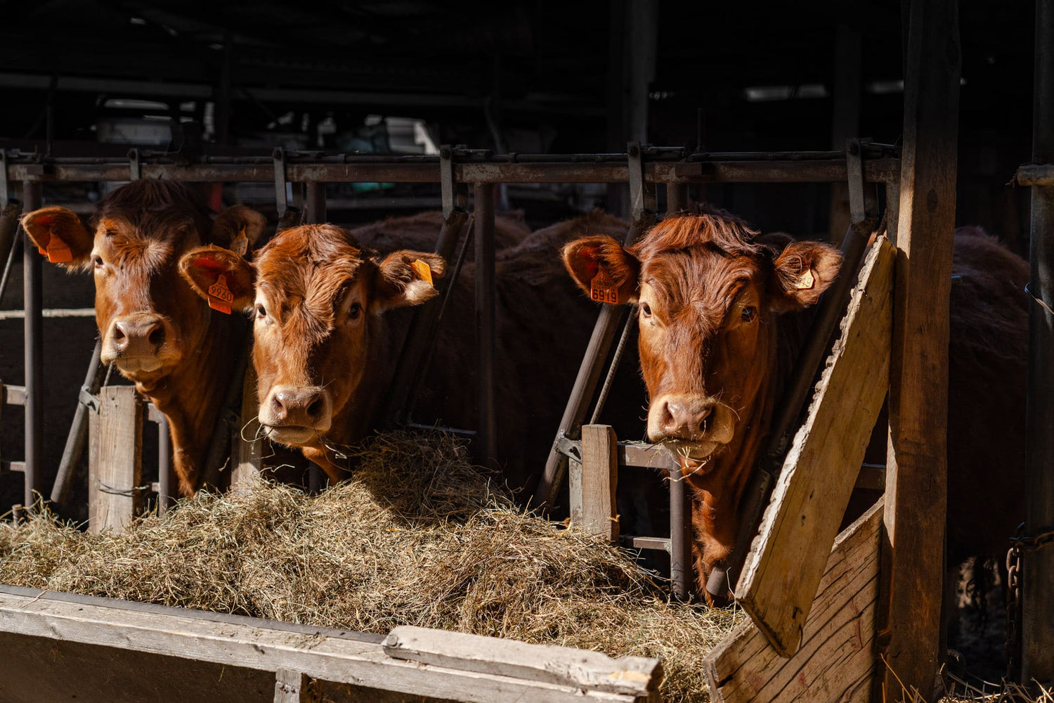Durante l'inverno, le mucche trovano rifugio nella nostra stalla da oltre 2500m2, dove vengono nutrite con fieno secco e cereali naturali.
